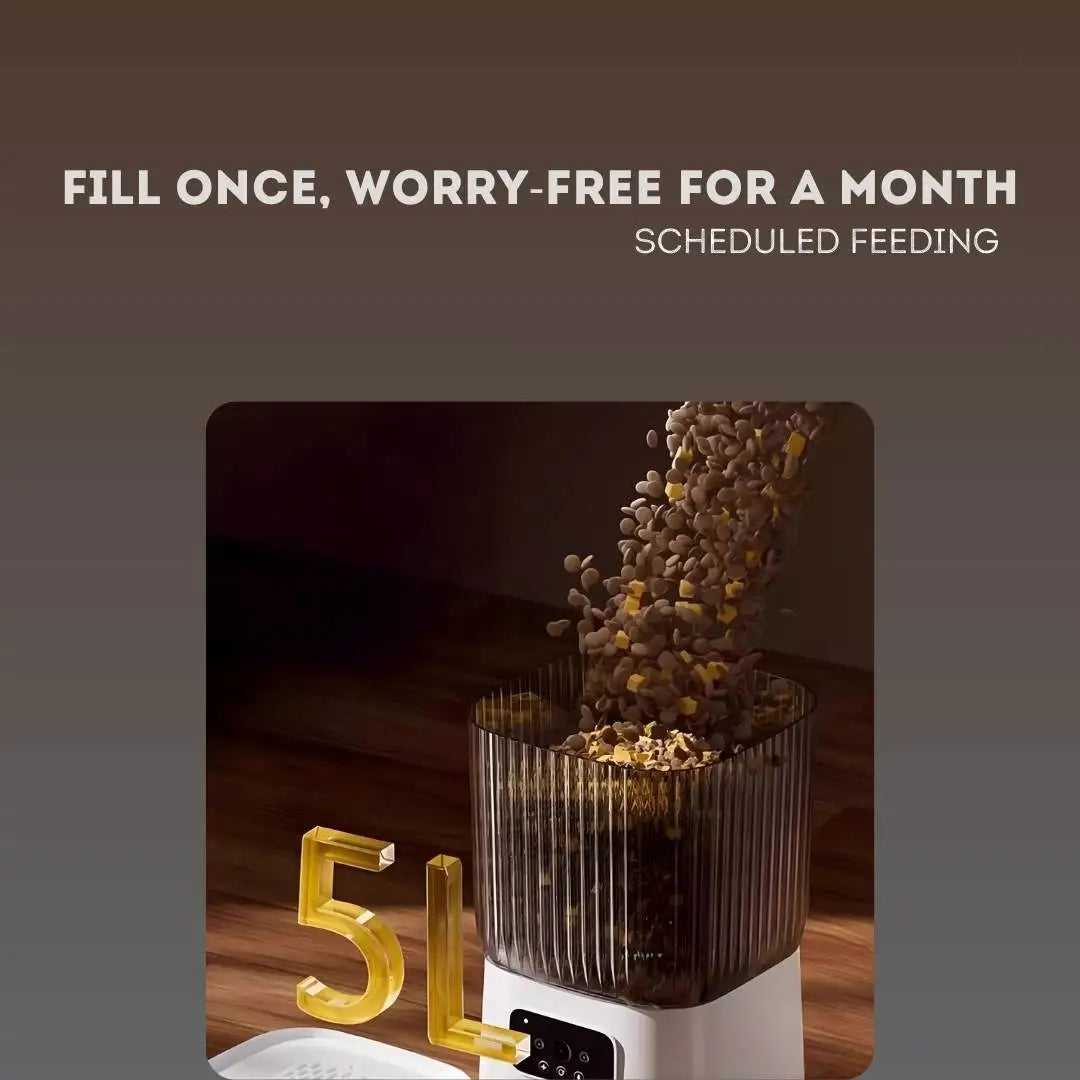 The large 5L capacity, stainless steel food bowl, and compatibility with dry food ensure hygienic and long-lasting use.
